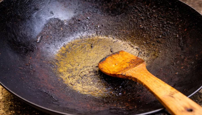 Caranya sangat senang. Panaskan air dalam periuk yang mempunyai kesan hangus dan masukkan sedikit garam. Biarkan seketika supaya kerak menjadi lembut.