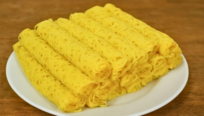 Untuk hasil roti jala yang lembut dan tidak mudah keras, pastikan adunan cukup rehat seketika sebelum dimasak. Gunakan kuali non-stick supaya corak jala kekal cantik dan tidak melekat. Jika ingin warna lebih menarik, boleh tambah sedikit pewarna kuning telur mengikut citarasa.
