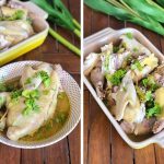 Bau aroma halia dan daun ketumbar menambah perisa pada ayam yang dikukus.