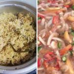 Nasi daging dimasak dengan bahan tumis yang membangkitkan aroma dan menggunakan air rebusan daging itu. Tidak lengkap nasi daging tanpa air asam. Paduan keduanya...